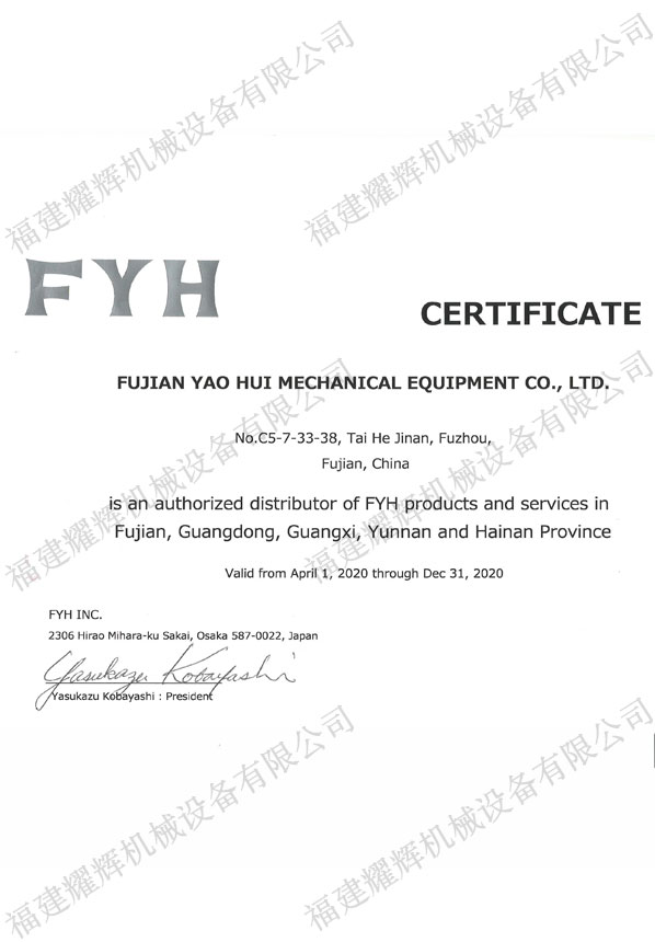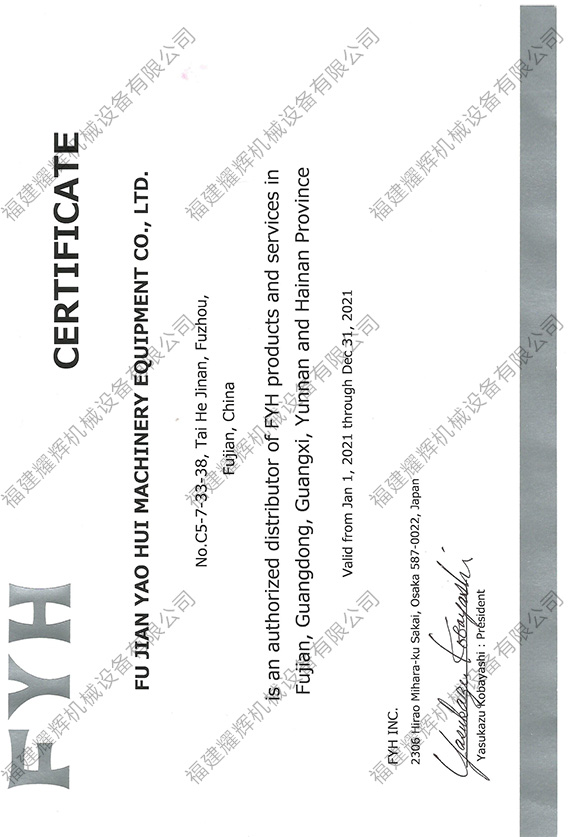 FYH授權(quán)證書