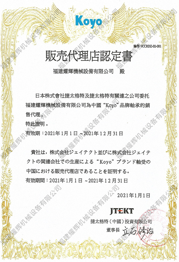 koyo授權(quán)證書